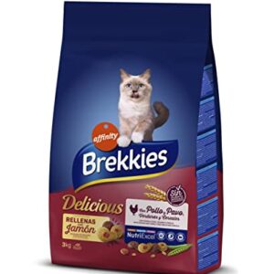 Brekkies Pienso para Gatos Delicious con Aves y Verduras 3 kg – Alimento Completo y Equilibrado para Gatos con Pollo, Pavo y Nutrientes Esenciales