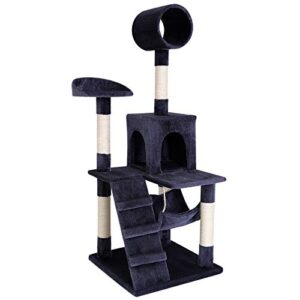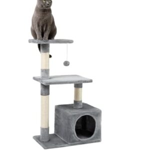 Árbol rascador para gatos lionto 133 cm gris – Rascador grande con base estable, caseta, plataforma y barras de sisal resistentes