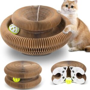 MHwan Juguetes para Gatos 2 en 1 con Rascador, Campana y Diseño Plegable Acordeón – Resistente a Arañazos, Seguro y Duradero
