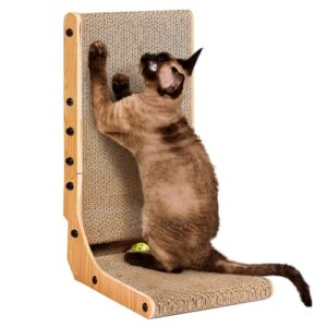 EHEYCIGA Rascador para Gatos en Forma de L, de Cartón Resistente, con Juguete de Pelota y Fácil Instalación – 48 cm, Ideal para Gatos de Interior y Protección de Muebles
