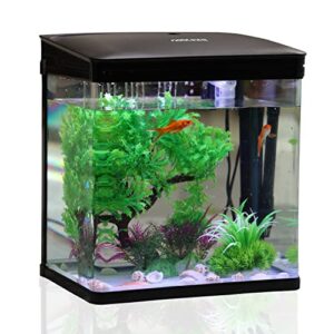 • Acuario Completo Nobleza de 7L con Filtro Integrado e Iluminación LED – Pecera de Cristal Curvo para Niños y Principiantes, Ideal para Oficina y Hogar (Negro)