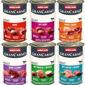 animonda GranCarno Comida Húmeda para Perros Adultos – Alimento Natural 100% Carne Fresca, Sin Cereales ni Soja, Pack 6 x 400 g