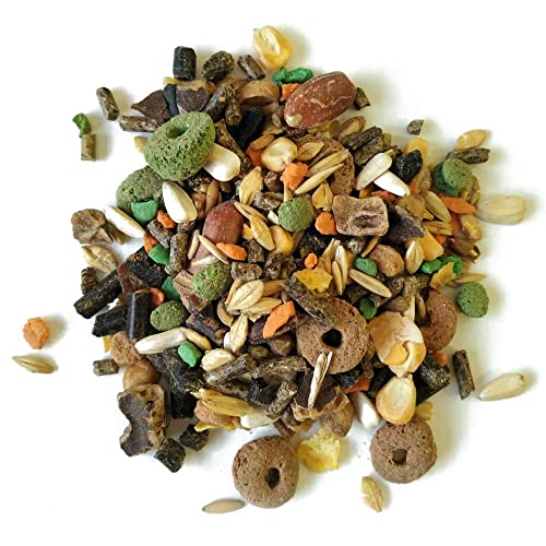 • Ingredientes 100% naturales: Mezcla de maíz, guisante verde, pipas de alazor, sorgo, algarroba, alfalfa, maíz en copos y alimento extrusionado.