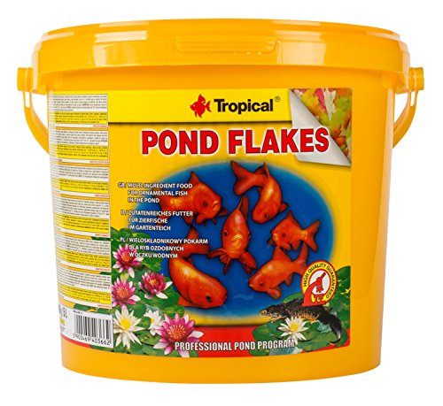 ¿Buscas un alimento equilibrado y saludable para tus peces ornamentales de estanque? Con Pond Flakes 5L / 800g tienes el mejor alimento en copos para cuidar a carpas jóvenes, koi y otras especies pequeñas de tu jardín acuático. Formulado con múltiples ingredientes de alta calidad, Pond Flakes aporta todos los nutrientes esenciales que tus peces necesitan para desarrollarse sanos y con energía.